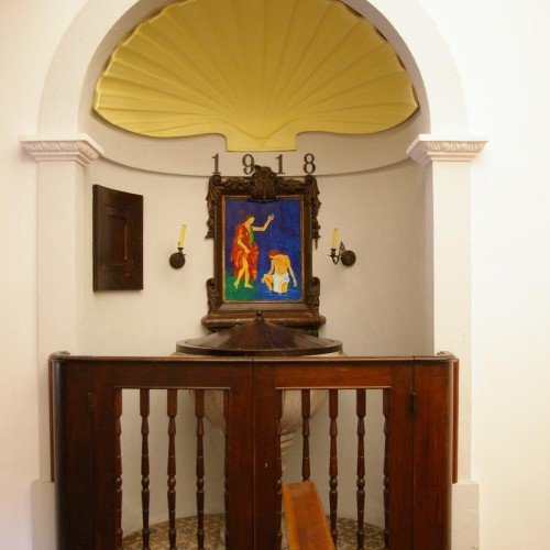 Criada a paróquia em 25 abril de 1918, o primeiro registo de batismo data de 10 setembro de 1918, constante no Livro de Registo de Baptizados, Casamentos e Óbitos, sendo igualmente o primeiro documento histórico que envolve a paróquia.Todo o espaço é alusivo ao batismo de Jesus no rio Jordão, quer pela pintura, quer pelo teto em forma de concha.
