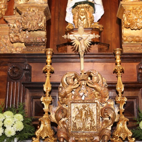 Imagem Nossa Senhora da Piedade ou de Soledade. Escultura do séc. XVI, autor desconhecido. Em 1897, foram mudados os altares de Nossa Senhora da Piedade e de Nossa Senhora da Conceição.